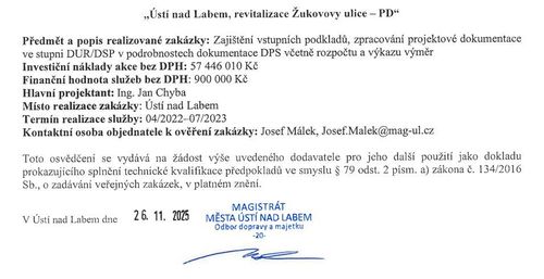 Pro Ústí nad Labem jsme zpracovali projektovou dokumentaci pro rekonstrukci komunikací a přilehlých ploch v Žukovově ulici.